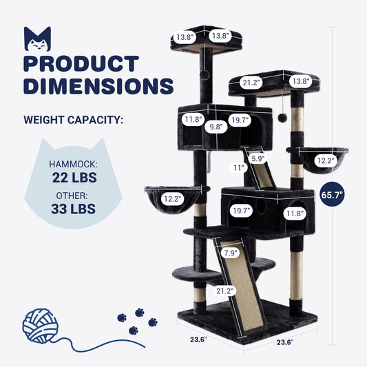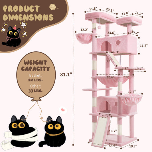 Sifurni 81" Multi-Level Tall Cat Tree Tower for Large Cat with Cat Condo and Hammock, Scratching Post & Scratching Ramp