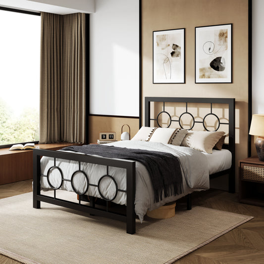 Sifurni Metal Platform Bed Frame with Modern & Vintage Headboard and Footboard, Black