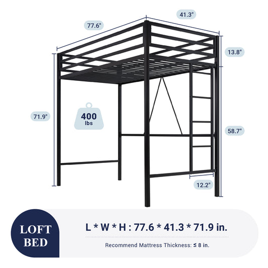 Sifurni Heavy Duty Twin Size Metal Loft Bed with Full-Length Guardrail & Removable Stairs