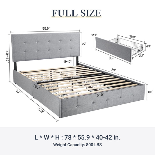 Sifurni Linen Fabric Upholstered Platform Bed Frame with 4 Drawers Storage and Adjustable Headboard